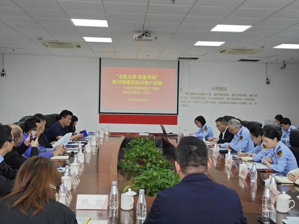 为实现党建工作与产业发展深度融合,促进小昆山镇智能制造产业高质量发展,近日,松江区小昆山镇市场监管所联合镇党群服务中心、镇商会等部门举行新兴领域“市监先锋 质惠茸城”党建引领产业链高质量发展工作会。