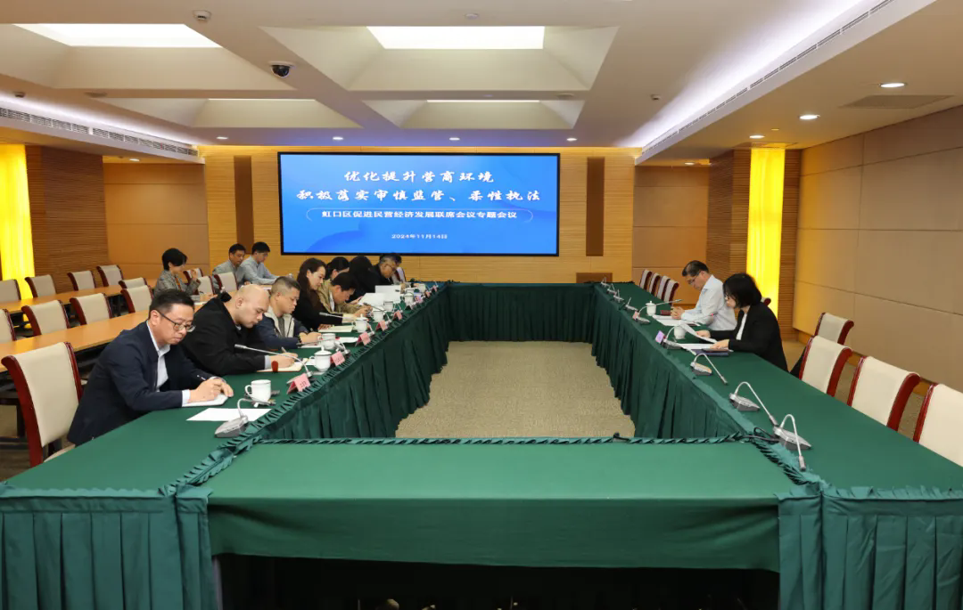 11月14日下午,虹口区促进民营经济发展联席会议专题会议召开,围绕“优化提升营商环境,积极落实审慎监管、柔性执法”主题展开交流。联席会议总召集人、区委常委、统战部部长郑宏出席并讲话。会议由联席会议办公室主任、区委统战部副部长、区工商联党组书记方薇薇主持。