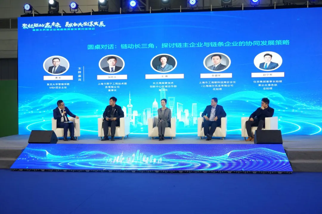 活动还邀请了复旦大学MBA项目主任曹能和长三角国家技术创新中心区域合作部副主任王萌,上海市工商联科技商会会长、上海瑞尔实业有限公司总经理李健军,仪菲集团董事长助理兼公共事务部总经理赵宁军,上海卡脖子工程技术服务有限公司董事长张晓光,以“链主企业与链条企业的协同发展策略”为话题,共同探讨如何更好地实现链主企业与链条企业的协同发展,为嘉昆太地区的经济发展提供新的思路和方法。