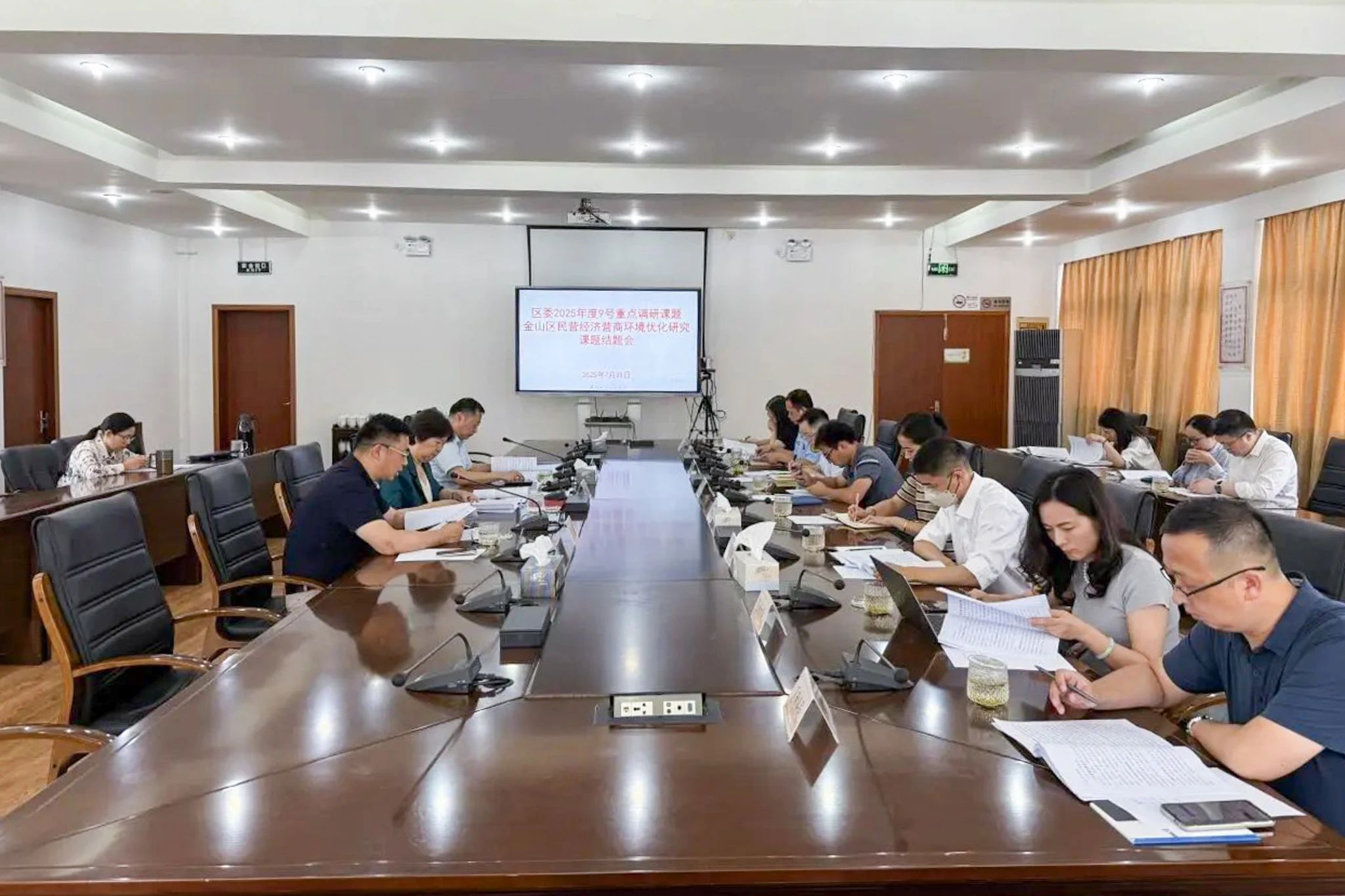 7月31日下午,金山区召开区委2025年度9号重点调研课题——“聚焦优化民营企业营商环境,推进民营经济高质量发展研究”结题会。金山区委常委、统战部部长张恂出席会议并讲话,区人大常委会副主任、区工商联主席余雷主持会议。