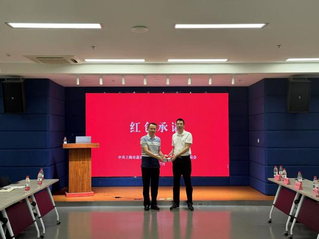 “红色承诺”环节,区发改委向孙原野及企业代表赠送《嘉定区发改委行政许可和公共服务操作指南》《嘉定区发改委党员服务联系卡》。