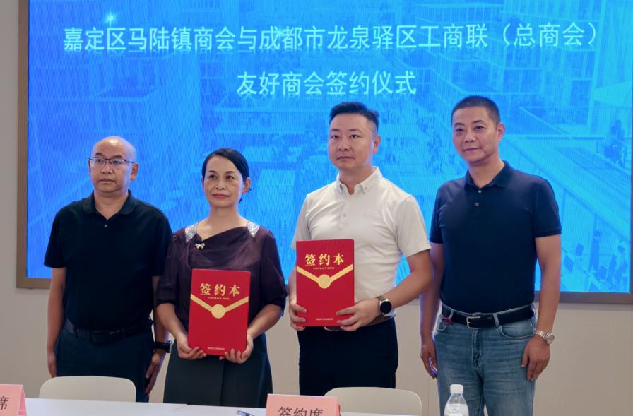 为深入贯彻落实国家区域协调发展战略,推动长三角与成渝地区民营经济交流合作,9月11日,嘉定区马陆镇商会赴四川省成都市龙泉驿区开展“跃‘马’凝心聚共识 ‘陆’力同行促发展”友好商会交流活动。龙泉驿区委统战部副部长、区工商联党组书记何及,龙泉驿区工商联主席、区总商会会长彭晓勤,嘉定区工商联党组成员、副主席陈攀,马陆镇党委委员陈华婷出席活动。马陆镇党委委员、副镇长陈剑主持会议。两地商会会员企业代表30余人参加。