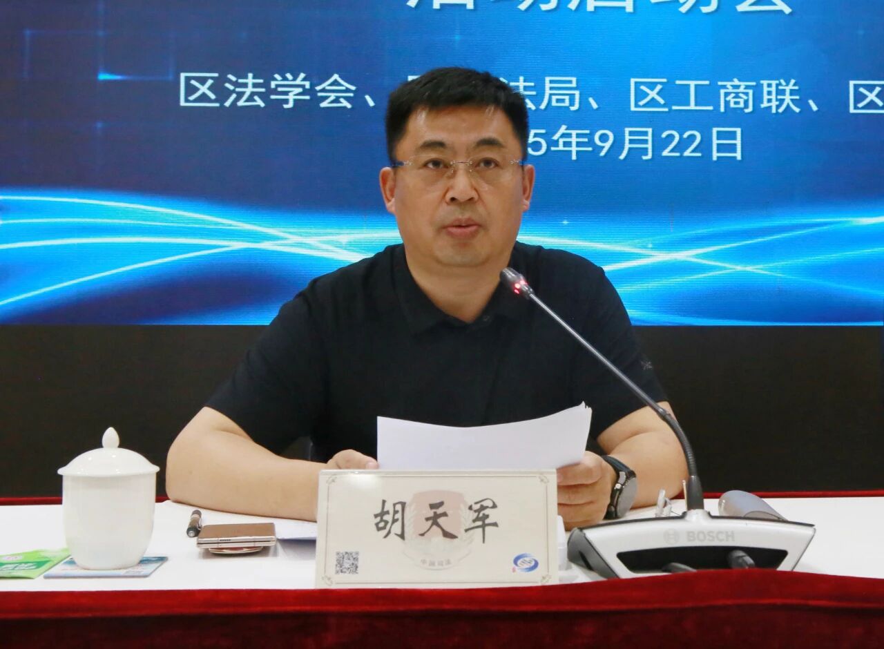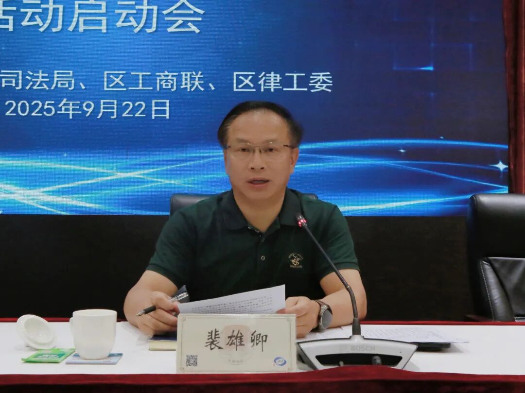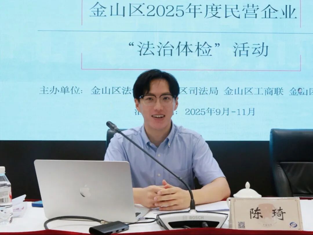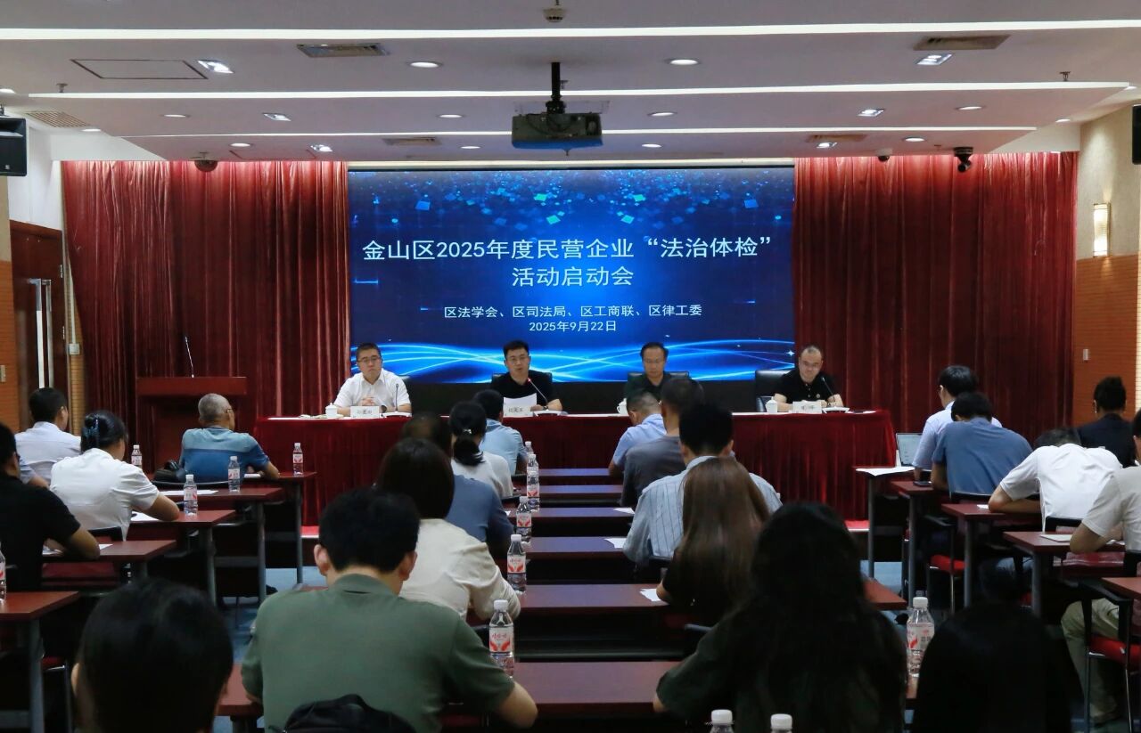 9月22日下午,金山区法学会、区司法局、区工商联、区律工委共同举办金山区2025年度民营企业“法治体检”活动启动会暨律企座谈会。区委统战部副部长、区工商联党组书记胡天军,区司法局局长裴雄卿出席会议。区司法局党委委员、副局长孙亚超主持会议。