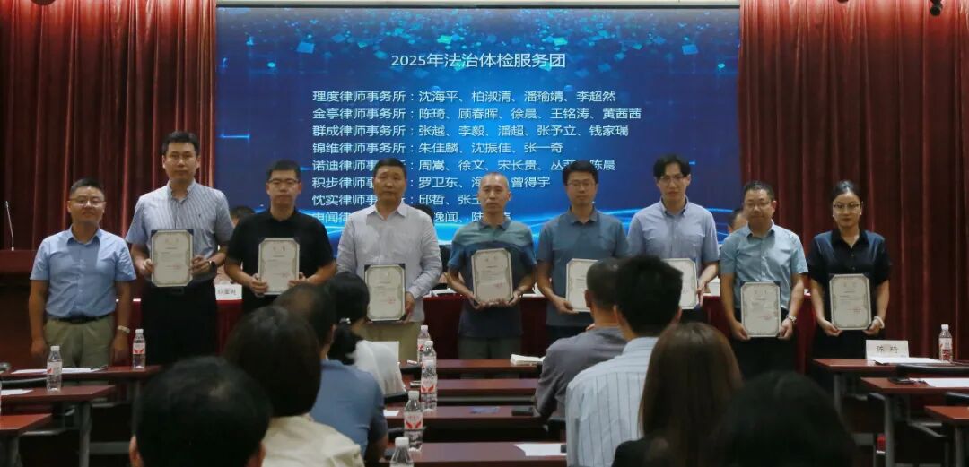 区法学会秘书长谢迪富为2025年法治体检服务团成员代表颁发证书。