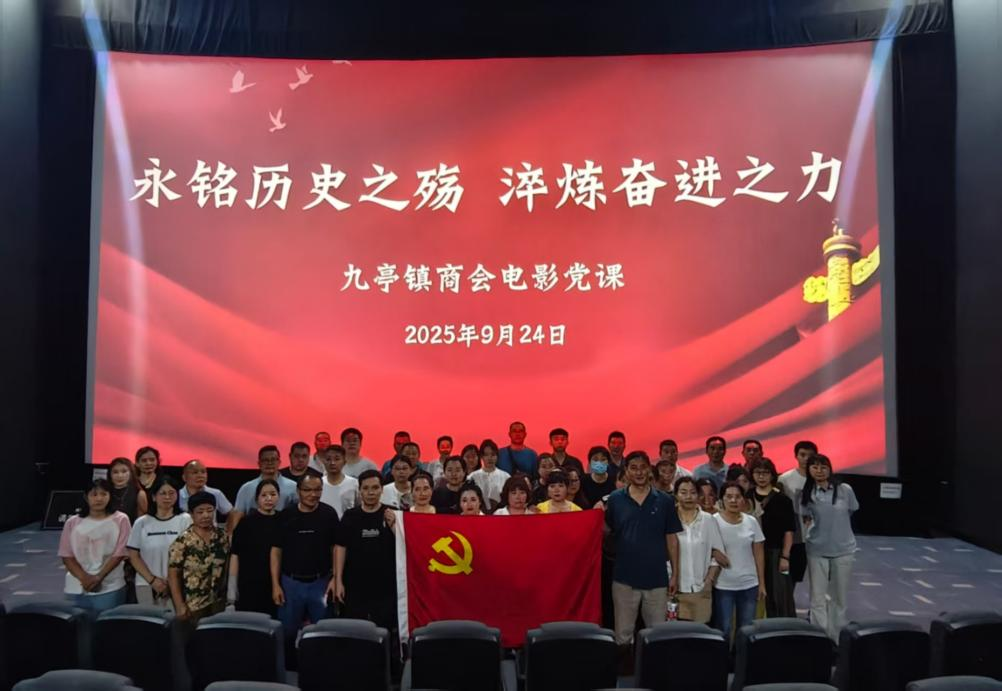 此次主题电影党课,是九亭镇商会创新爱国主义教育形式、强化党建引领企业发展的重要实践。活动通过“观影+研讨”的模式,不仅让参会人员接受了深刻的思想洗礼,更有效凝聚了会员企业“听党话、感党恩、跟党走”的共识。