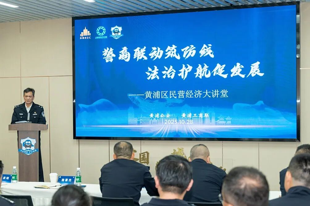 10月28日下午,黄浦公安分局与黄浦区工商联联合举办警商联动对接会暨民营经济大讲堂活动,帮助各街道商会与属地派出所建立联勤联动机制,并以黄浦区“蓝鲸”护企工作站为依托,开展法治宣讲,将护企防范触角向全区企业延伸,进一步提升区内中小企业对涉企电信诈骗、企业内控管理漏洞的防范意识和能力,有力护航本区营商环境优化与经济社会发展。