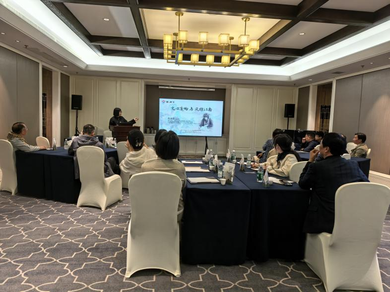 上海大学上海美术学院胡建君教授受邀带来《文心造物与风雅江南》分享。她结合诗词典故与实物案例,解析“文心造物”精神内核与“风雅江南”文化基因,引导企业家将传统美学智慧融入日常生活,带来心灵洗礼。