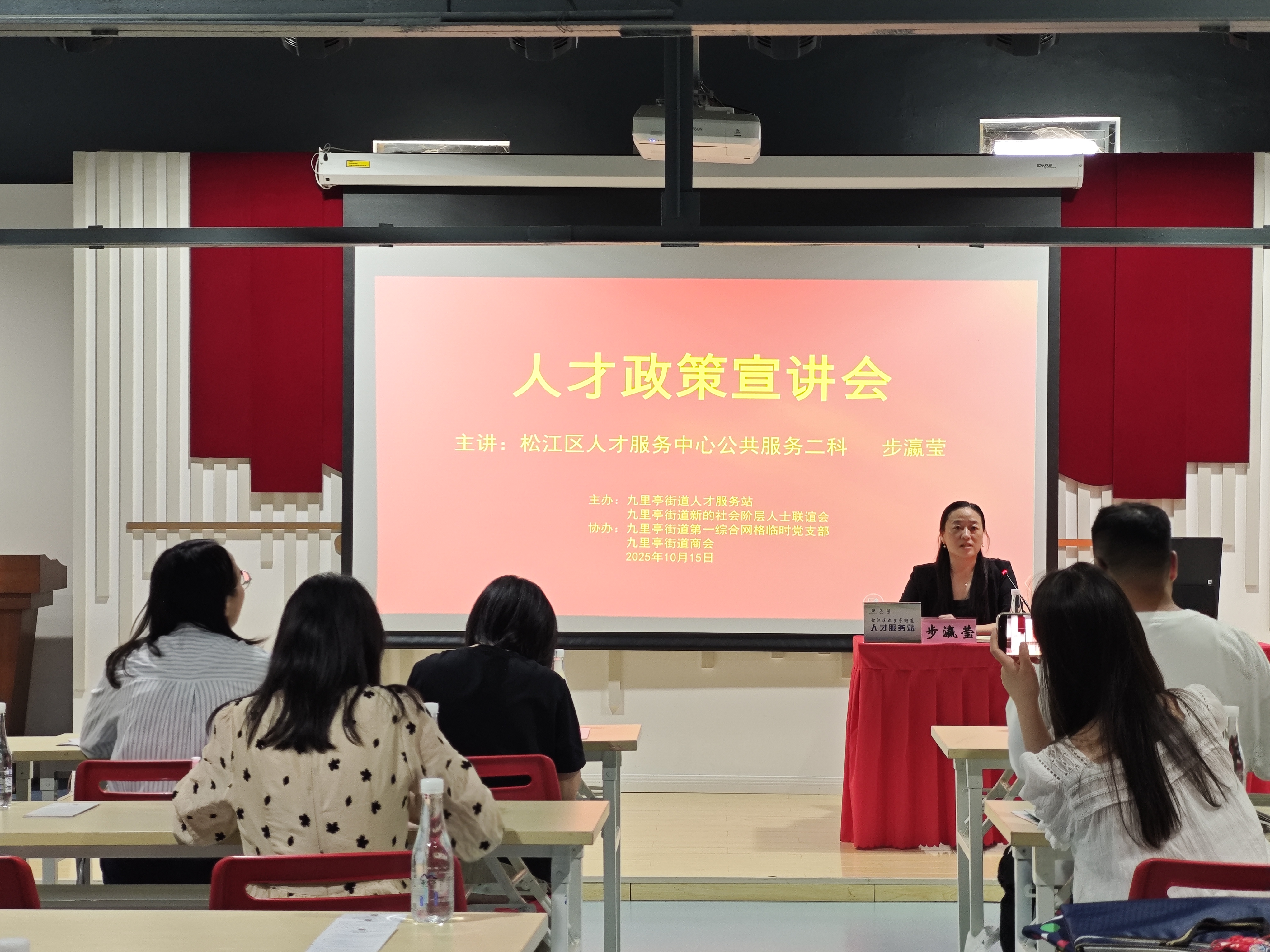 人才政策宣讲会上,松江区人才服务中心工作人员步瀛莹为大家解读市级人才政策,围绕上海市居住证积分、海外人才居住证、人才落户等方面的内容,并结合案例提供实操指导。在互动交流环节,她还为企业人才进行了“面对面答疑、点对点指导”,切实破解人才服务堵点。