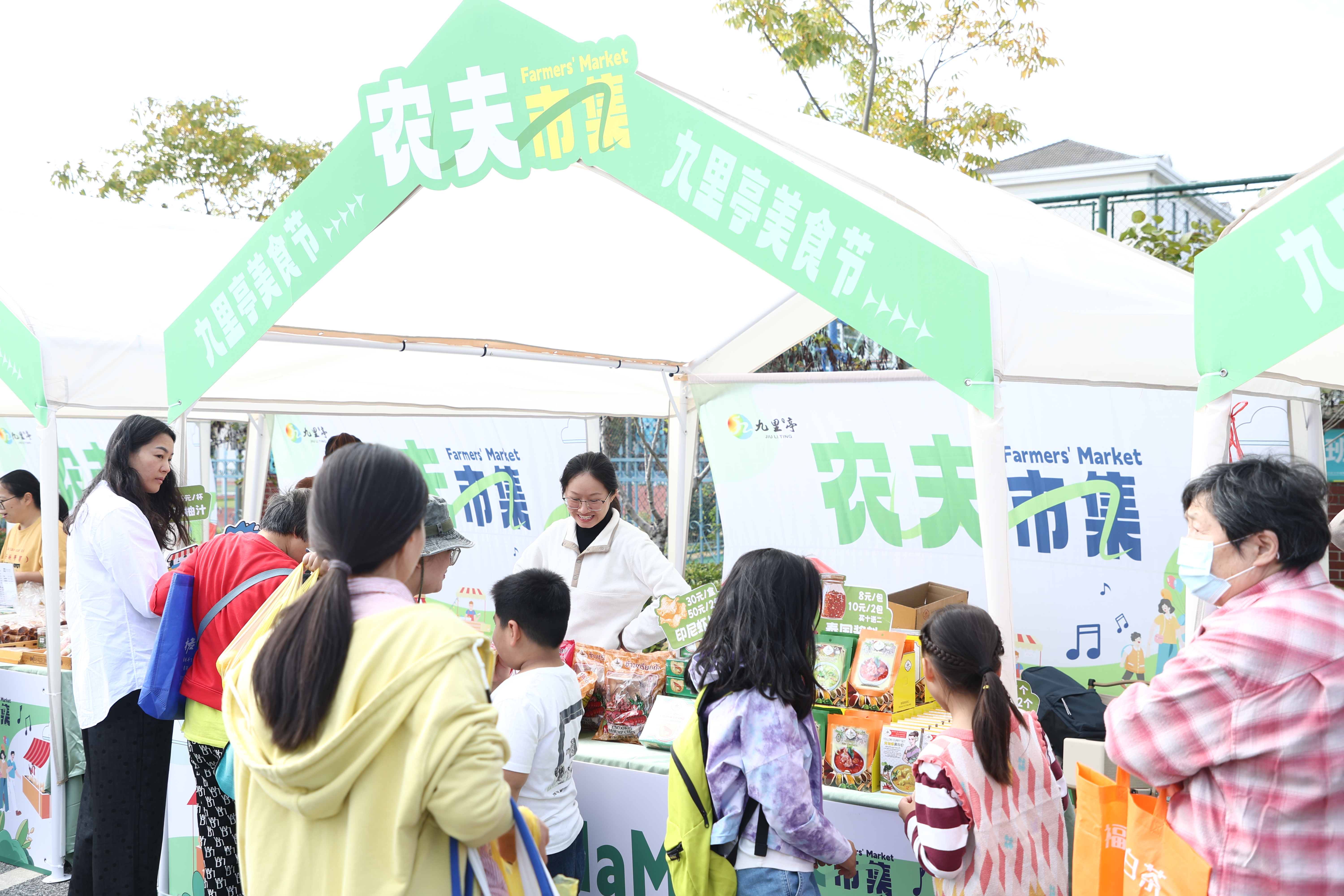 本次市集以“晒秋”为主题,汇聚了近20个特色摊位,涵盖在地鲜果、松江传统美食、咖啡奶茶、轻餐小食、文创产品等多个品类,不仅是一次消费体验的升级,也是对松江传统品牌的一次推广,亦是九里亭街道对居民十年相伴的暖心回馈。通过营造沉浸式田园场景,进一步激发了社区消费活力,深化了九里亭作为“特色文化目的地”的公众印记。