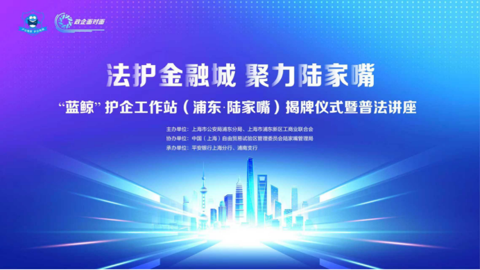 10月30日,浦东新区工商联会同上海市公安局浦东分局、陆家嘴管理局、平安银行上海分行于平安金融大厦举办“法护金融城,聚力陆家嘴”——“蓝鲸”护企工作站(浦东·陆家嘴)揭牌仪式暨普法讲座活动。本次活动在上海市公安局经侦总队的指导下进行,旨在深化推进公安经侦部门服务民营经济高质量发展,加强民营企业合法权益维护,为企业提供全方位、零距离的法律服务。