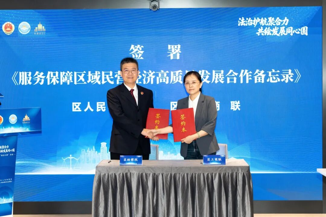 活动中,区人民检察院与区工商联共同签订《服务保障区域民营经济高质量发展合作备忘录》。双方将以机制建设为核心,通过搭建会商研讨平台、开展专项调研、落实民主监督等十项工作举措,进一步深化双方协作,为企业在黄浦放心经营、健康发展保驾护航。