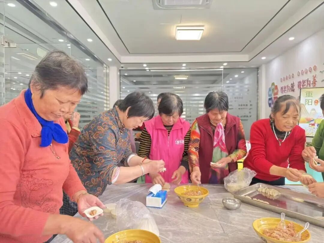 重阳节期间,商会执委单位上海金山区景红园惠民服务社开展走访慰问活动,为长者送上节日祝福和慰问品,关切询问他们的身体状况与生活需求,叮嘱注意防寒保暖和居家安全,将温暖与关怀送到老人心坎上。大家还齐聚一堂,共同制作传统重阳糕、重阳饺子,揉面、分剂、擀皮、蒸制,分工协作,香气四溢。当热腾腾的重阳糕、圆溜溜的饺子端上桌,老人们一边品尝,一边聊着家常,脸上写满幸福与满足。