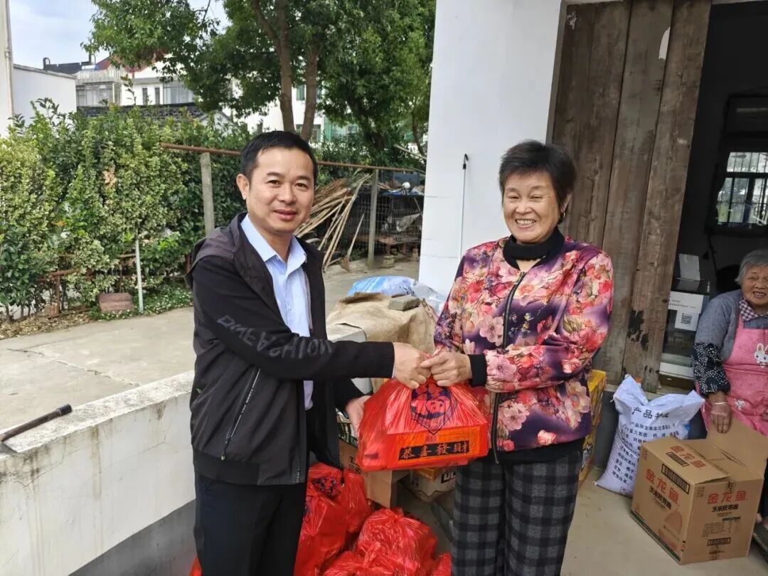 重阳节前夕,商会会长单位上海联中食用菌专业合作社延续每年敬老传统,向中联村60周岁以上老人赠送“敬老礼盒”678份,内含长寿面、状元糕、毛巾等实用物资。他们表示,敬老爱老是中华传统美德,企业在敬老之路上会继续前行。拿到慰问品的村中老人手捧礼盒,脸上洋溢着幸福笑容,纷纷对企业的善举表示感谢。