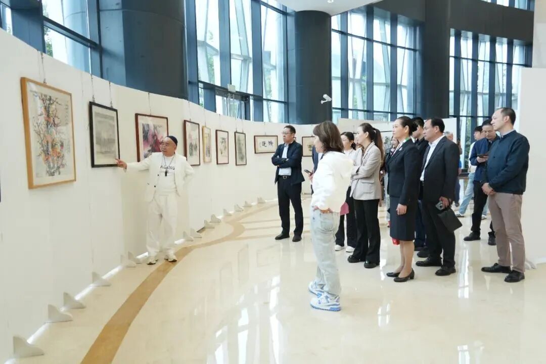 交流活动首站设于渔人码头一楼大厅,全体人员共同参与由八埭头书画院与平凉路街道商会联合举办的书画展交流活动。在精美书画作品营造的艺术氛围中,深入感受文化魅力,为后续交流奠定良好基础。