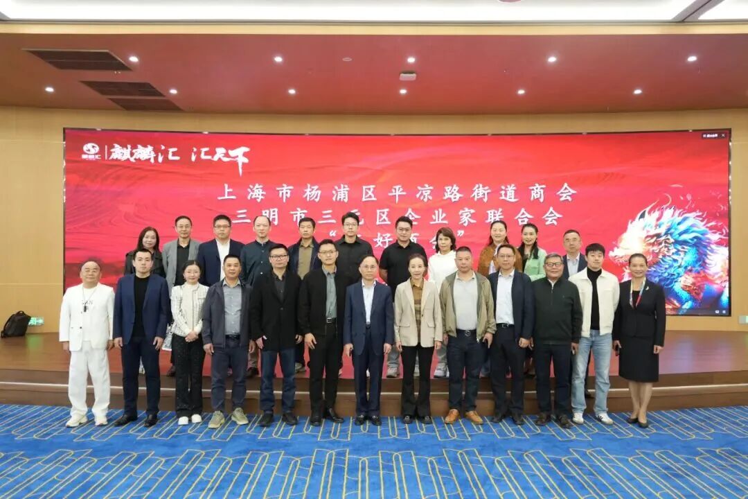 杨浦区平凉路街道办事处副主任、营商办分管负责同志王硕,营商办四级调研员孙柳、主任唐骏,党群中心负责人陆丰;平凉路街道商会党支部书记兼会长应彭华,副会长郑俊辉、杨勤颖、周杰文、章岩、徐建云,监事长俞日东,监事顾本建,理事潘缘幸、王瀛、包亮,企业代表、上海市四川商会副会长刘阳;三明市三元区企业家联合会会长刘雪梅,党支部书记兼监事长罗昌疆,常务副会长陈海波、李烜、卓传明,副会长林航,理事徐微徨,秘书长李玉梅参加活动。