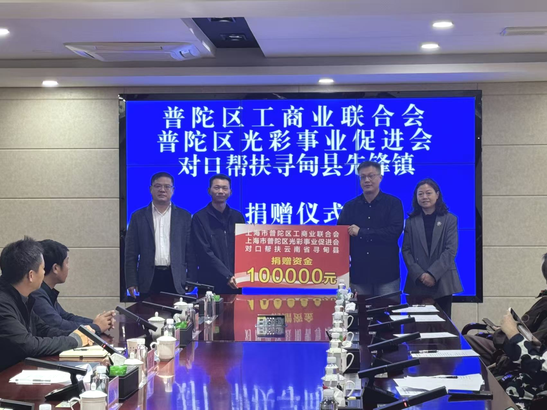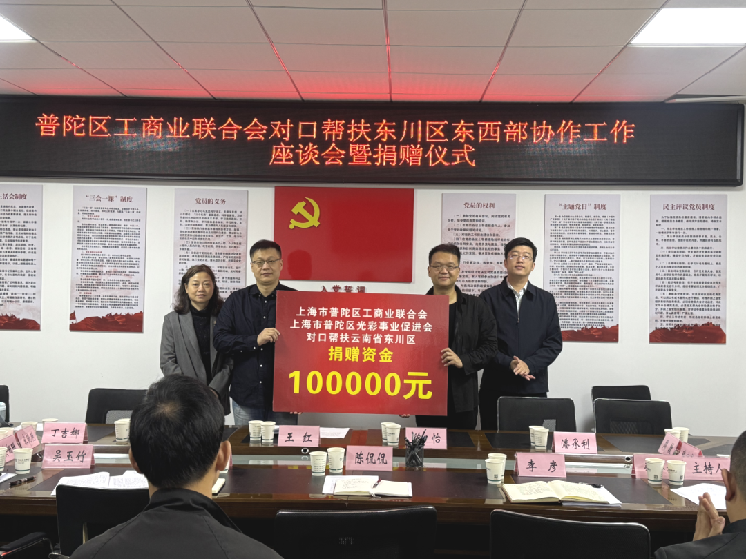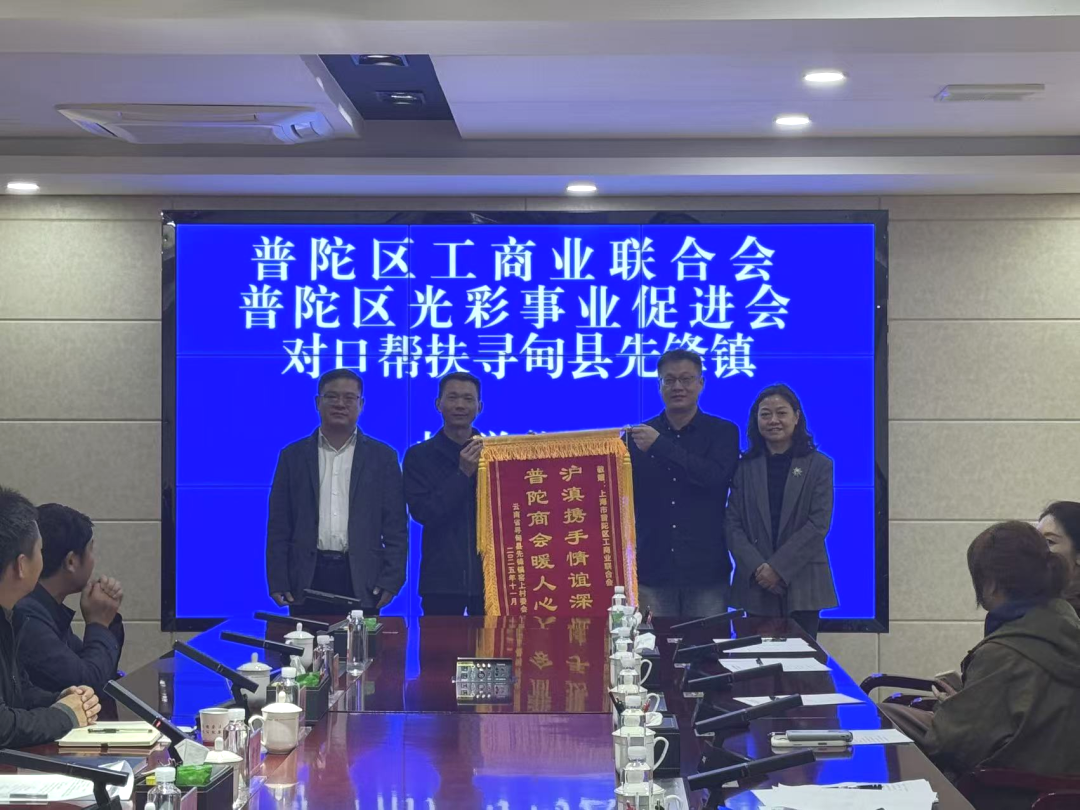 调研期间,普陀区光彩会向东川区、寻甸县各捐赠10万元,专项用于两地援建项目。其中,东川区资金将用于乡村振兴5年过渡期结束的成果展和当地文旅宣传等;寻甸县资金将定向支持该县先锋镇教育设施改善。先锋镇向普陀区光彩会献上锦旗表示感谢。