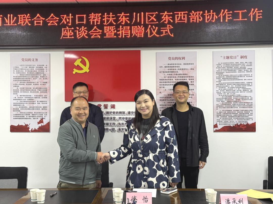 调研首日上午,代表团与东川区政府、援滇干部、区工商联及企业代表召开座谈会。双方围绕产业合作、商会交流、消费帮扶等议题展开深入探讨。