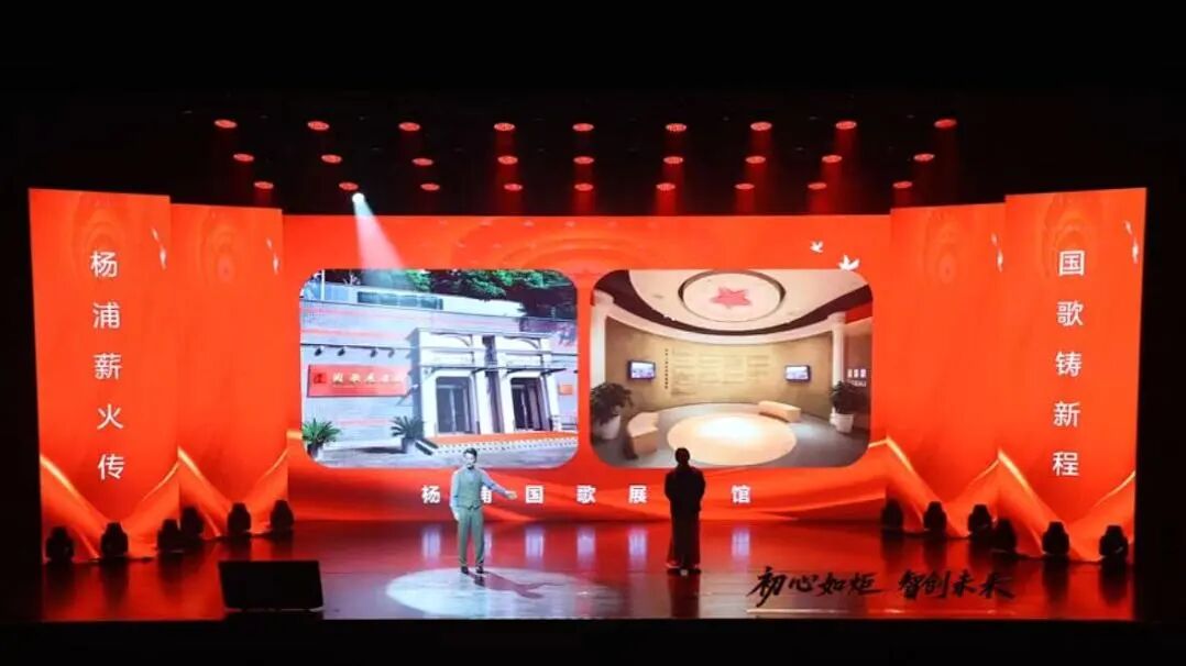 夜幕降临,一场特别的演出上演。舞台剧《杨浦薪火传 国歌回响铸新程》将观众带回到1935年——国歌在杨浦诞生的热血时刻。演员们动情演绎着聂云台资助革命青年赴法留学的故事,灯光流转间,剧情又巧妙衔接至当代杨浦企业的创新实践。