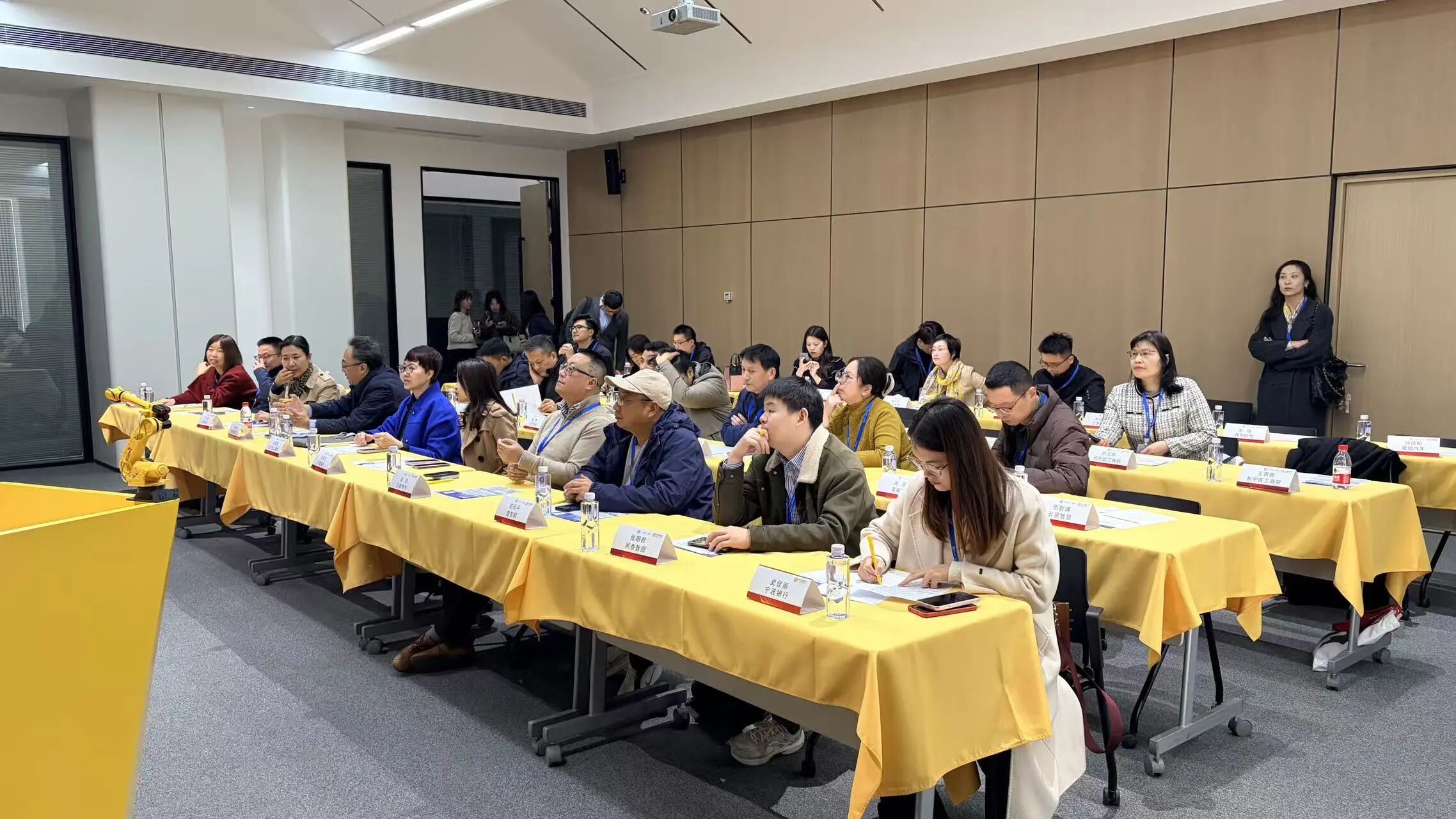 为进一步促进区民营企业数字化转型与智能化升级,学习借鉴国际领先的技术与管理模式,搭建技术交流、资源对接、金融赋能的桥梁,11月28日,长宁区工商联联手宁波银行长宁支行,组织长宁、苏州两地近30家企业走进上海发那科智能制造体验中心,沉浸式了解生产执行管理、数字化智能工厂、设备智能管理等智能制造解决方案,并围绕金融赋能、智能制造转型等话题深入探讨,激发创新活力,凝聚发展共识。