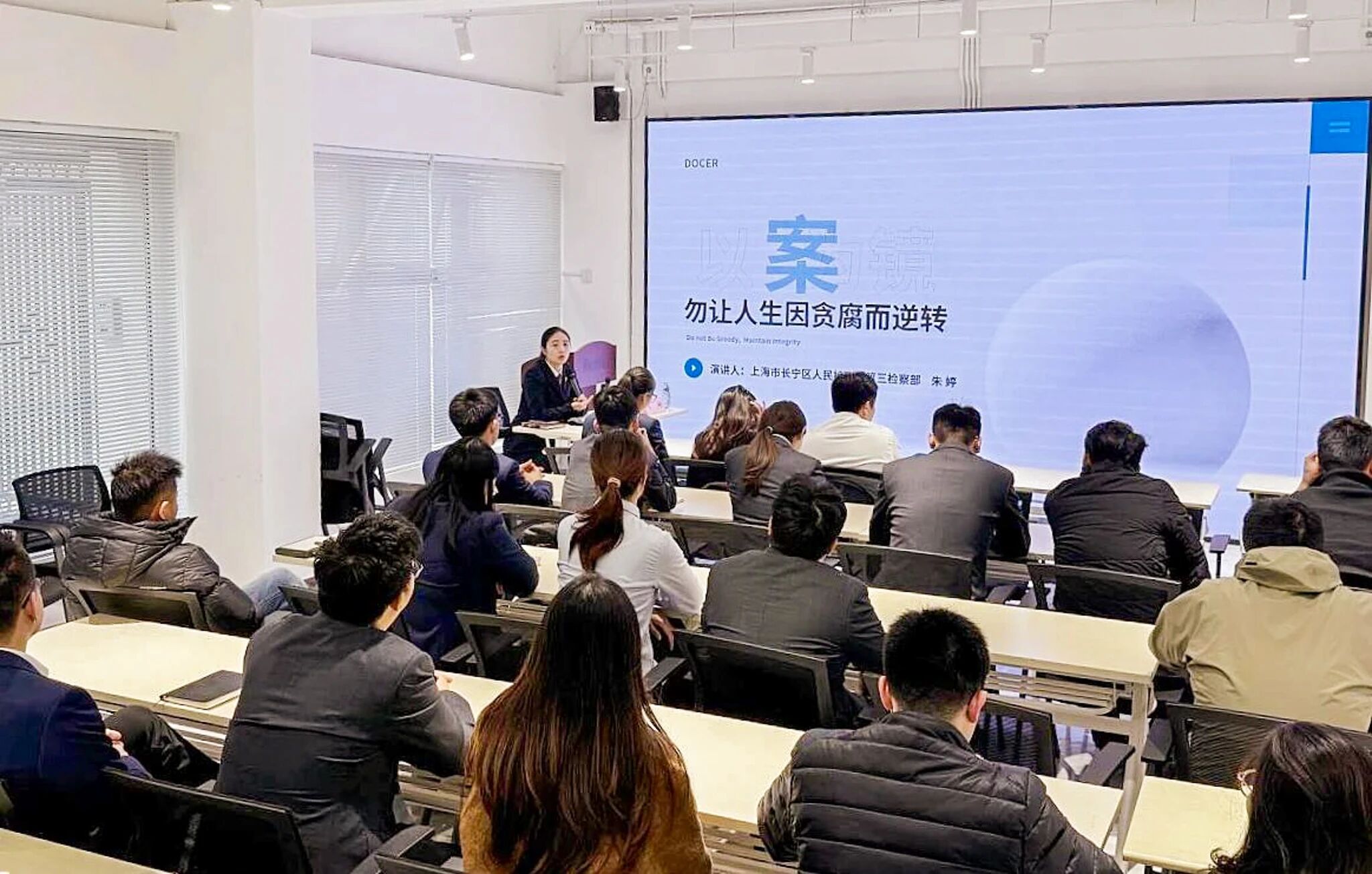 12月1日至7日,是第八个“宪法宣传周”。近日,长宁区工商联应会员企业诉求,第一时间与区检察院联动,邀请第三检察部检察官朱婷在“上海硅巷”检察工作站以“以案为镜,勿让人生因贪腐而逆转”为题开展法治讲座。
