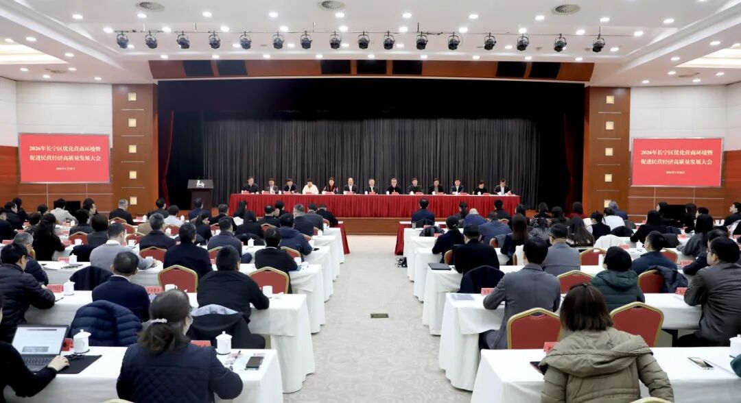 1月28日上午,长宁区召开2026年优化营商环境暨促进民营经济高质量发展大会,发布《长宁区加快打造国际一流营商环境行动方案(2026年)》和《长宁区2026年促进民营经济高质量发展若干措施》。区委书记张伟出席会议并讲话。区委副书记、区长刘平主持会议。区人大常委会主任戴骅,区政协主席洪流,市发展改革委副主任陈彦峰,区委副书记岑福康出席会议。