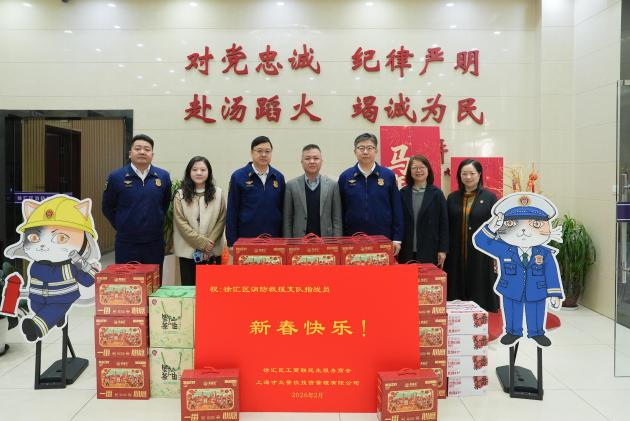2月13日,徐汇区委统战部副部长、区工商联党组书记张敏带队前往徐汇区消防救援支队开展新春慰问,向坚守岗位的消防救援指战员致以诚挚问候和新春祝福。区消防救援支队支队长索华伟、政委李菲等相关负责同志热情接待,区民生服务商会一同参加慰问,并向消防救援指战员送上新春祝福。