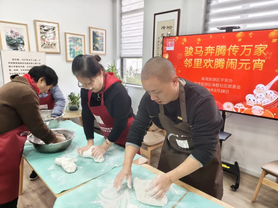 活动现场热闹非凡,处处洋溢着节日的喜悦。居民们欢聚一堂,揉面团、包馅料、搓汤圆,一双双巧手搓揉出一个个饱含祝福的汤圆,大家边做边聊,欢声笑语不断,共同品尝着香甜软糯的汤圆,一起沉浸在愉快欢乐之中,感受着社区的温暖和团圆的味道。