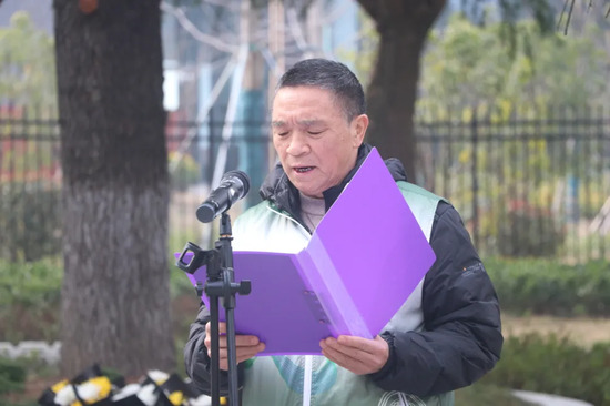 国歌奏毕,汤国兴现场宣读祭文,字字句句,饱含着对先烈们创业维艰、奋斗以成的崇敬之情,追思他们不畏牺牲、无私奉献的崇高精神,表达了后人继承遗志、奋发向前的坚定决心。