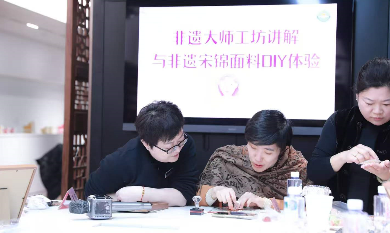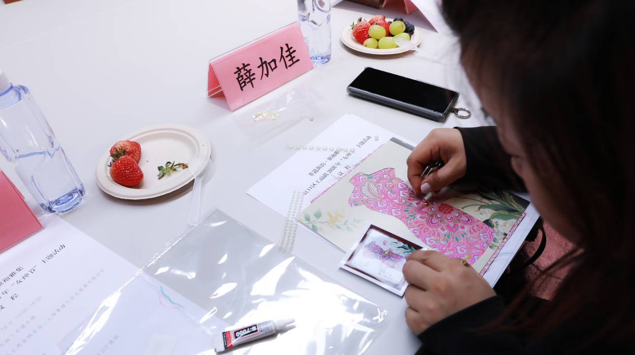 活动的重头戏当属非遗宋锦面料DIY体验环节。非遗大师现场讲解宋锦的织造工艺、文化价值与面料特色,手把手指导嘉宾们进行DIY创作。大家沉浸其中,精心选材、细致制作,将对美的理解与巧思融入作品之中,亲手打造属于自己的非遗文创小物。整个体验过程不仅让大家近距离接触非遗、体验非遗,更在沉浸式创作中厚植文化情怀、增强文化自信。