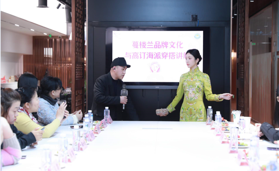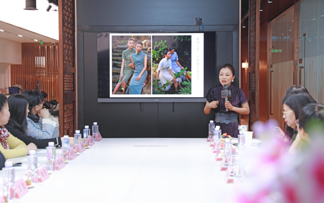 本次活动以旗袍为文化纽带,将非遗传承与美学体验深度融合,为女性企业家们打造了一场兼具文化底蕴与互动乐趣的雅集之旅。活动伊始,上海蔓楼兰企业发展有限公司总经理陈黎亲自为嘉宾们带来海派旗袍百年文化讲解,从历史渊源、款式演变到工艺特色,娓娓道来海派旗袍所承载的东方美学与城市记忆,让在场嘉宾对这一非遗文化瑰宝有了更深刻的理解。随后,蔓楼兰品牌专业人员分享品牌文化,并结合高订海派穿搭技巧,讲解旗袍与现代生活的融合之美,为女性企业家的日常与商务穿搭提供实用灵感。现场互动交流环节气氛热烈,大家各抒己见,在交流中凝聚情谊、碰撞思想。