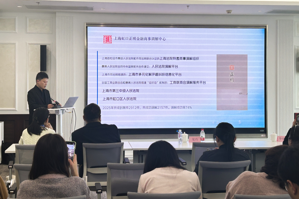 为进一步优化法治化营商环境,提升民营企业合规经营、依法维权、高效解纷的意识,3月26日下午,虹口区工商联联合区司法局、上海虹口正明金融商事调解中心在北外滩法律服务港举办“法治护航民营企业发展”专题活动。区司法局副局长夏玲,正明金融商事调解中心主任李晓萌出席活动,区工商联、区司法局相关科室同志,区工商联会员企业代表30余人参会。