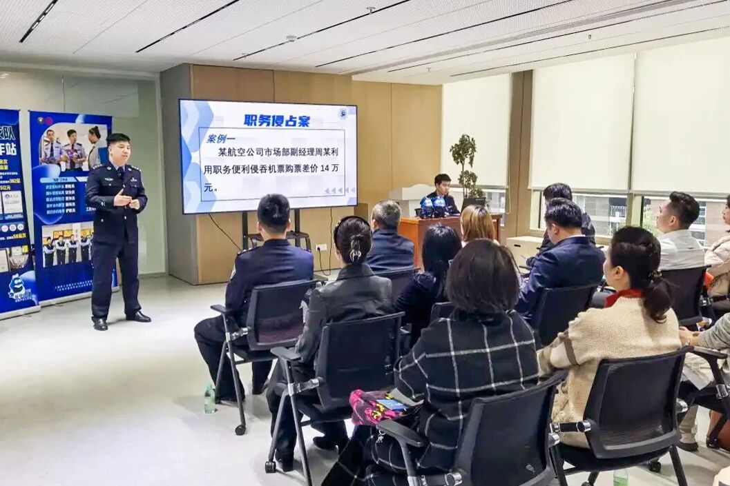 公安经侦支队专门梳理了成功侦办的民营航空公司内部腐败问题典型案例,在宣讲会现场进行以案释法并提供了风险隐患排查及封堵管理漏洞的系统性策略。