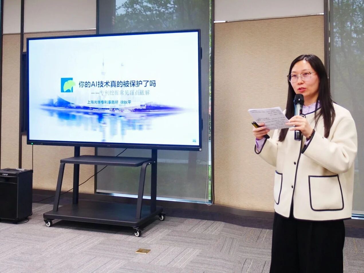 来自上海光华专利事务所的知识产权领域专家薛晓飞和徐秋平分别以“从‘小野孩’到商业帝国——Labubu知识产权布局深度解析与启示”和“你的AI技术真的被保护了吗——专利挖掘常见盲点破解”为题作交流分享。