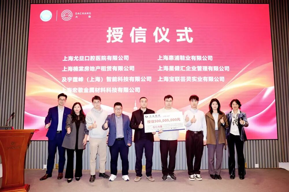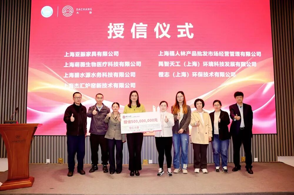 授信仪式中,五家银行分别对大场镇商会31家“白名单”企业进行了授信。中国银行宝山支行、农业银行宝山支行、交通银行宝山支行各授信5亿元;宁波银行宝山支行、泰隆银行宝山支行各授信3亿元。此次活动共计授信21亿元,不仅为中小微民营企业提供了贷款支持,同时也为企业发展注入了强劲动力。