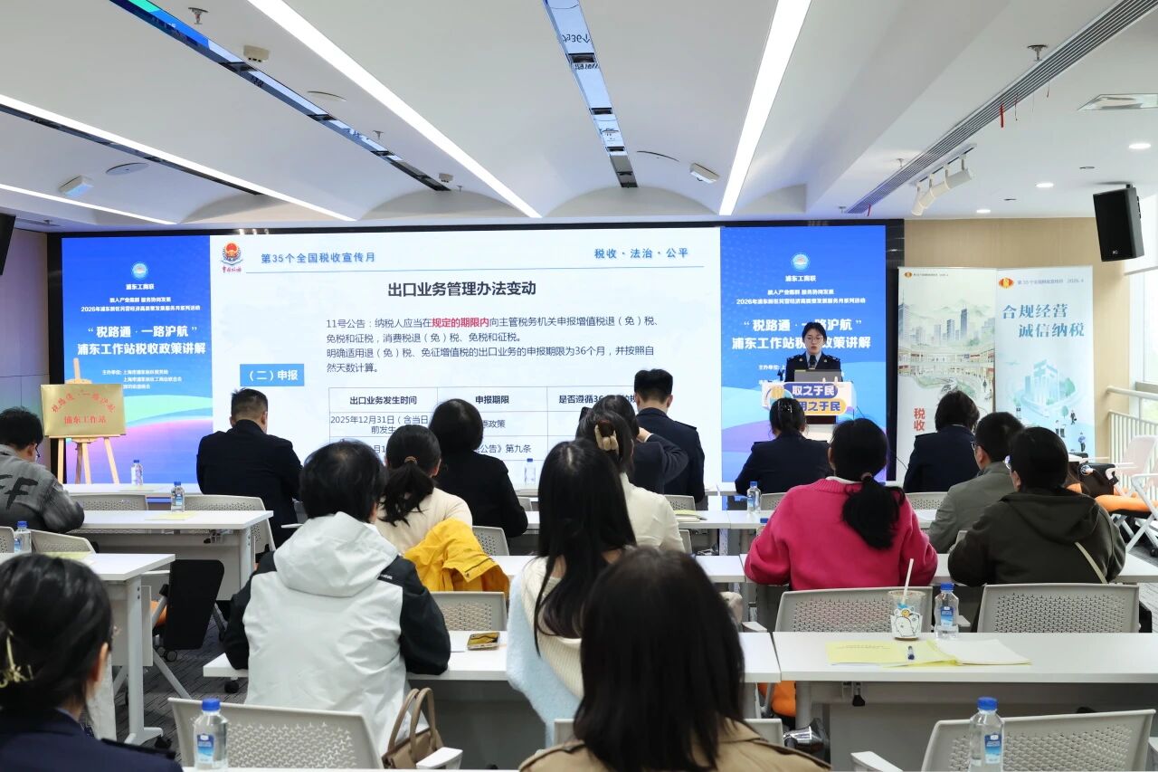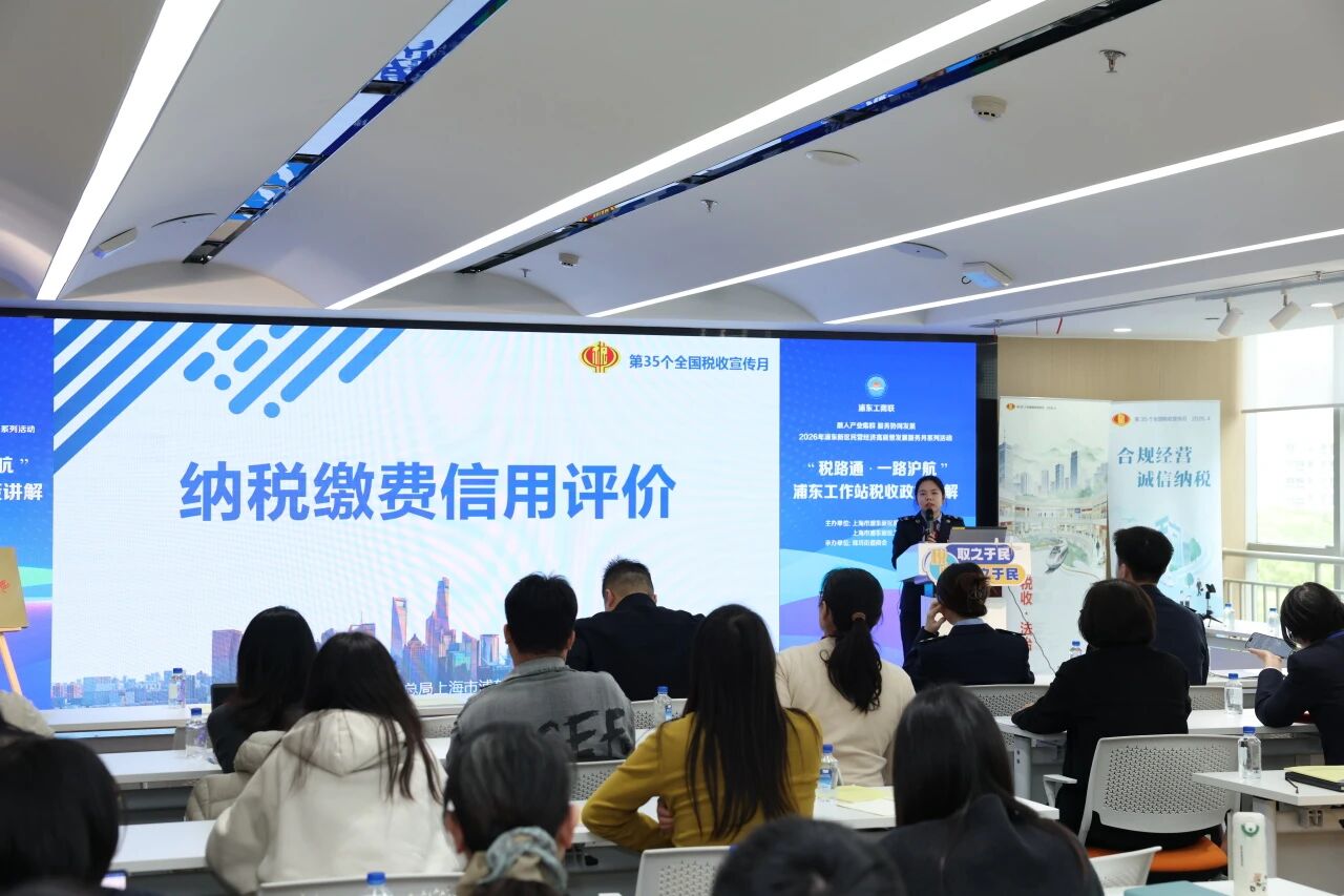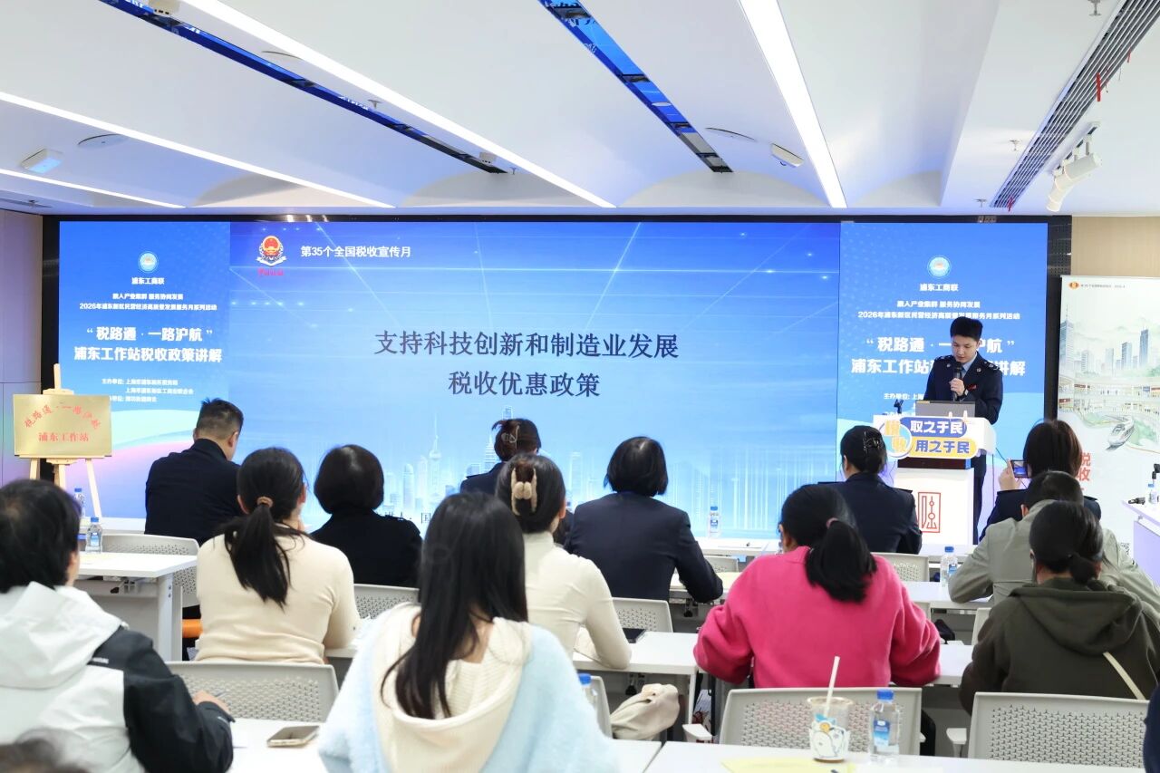 为深入贯彻党的二十大和二十届历次全会精神,全面落实《中华人民共和国民营经济促进法》、《上海市民营经济促进条例》,进一步优化营商环境,推动惠企政策精准直达,4月21日上午,正值第35个全国税收宣传月和民营经济高质量发展服务月之际,浦东新区工商联会同区税务局在双鸽大厦开展税收政策宣讲活动,40余家民营企业相关负责人参加活动。