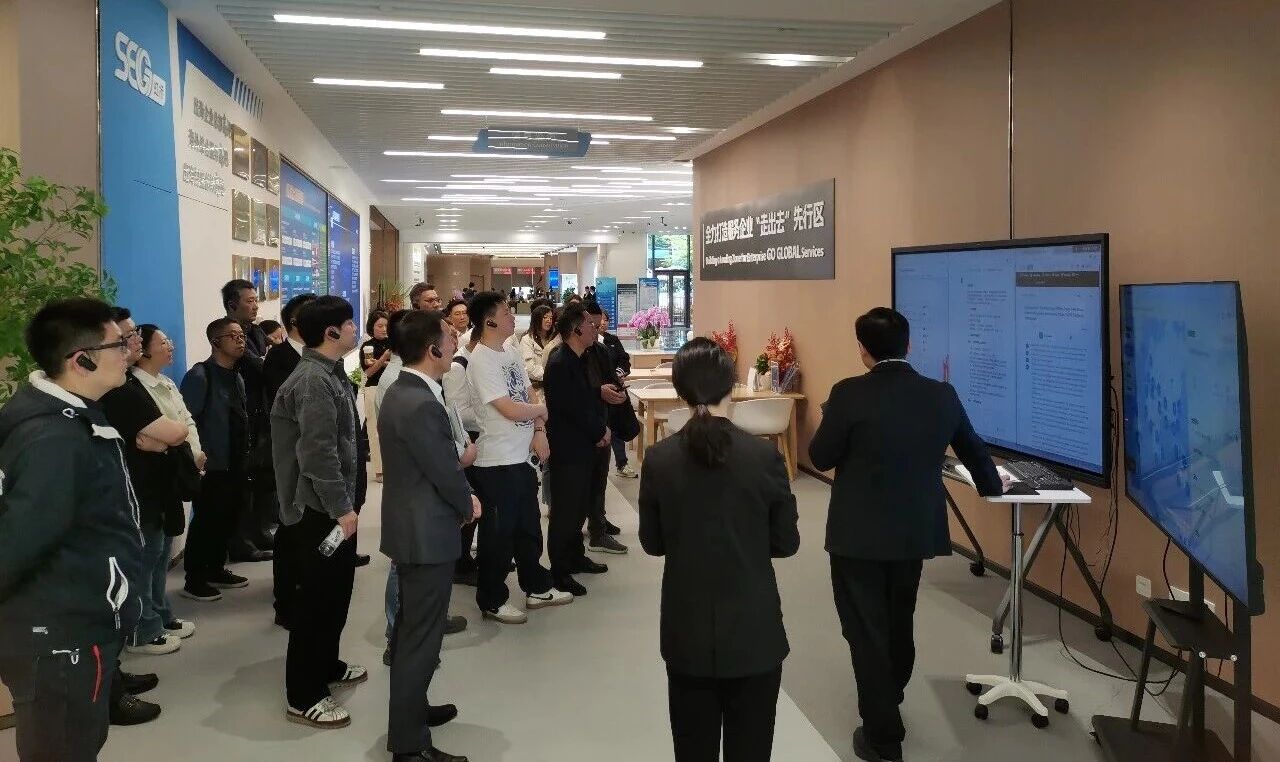 理论授课结束后,全体参会人员前往虹桥国际中央商务区,实地参观虹桥商务区“走出去”平台。通过现场观摩与交流,大家详细了解了平台在政策咨询、资源对接、风险防范、海外拓展等方面的服务功能,直观感受闵行助力民营企业“走出去”的坚实支撑,进一步拓宽了调研思路与信息收集视角。
