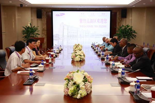 8月29日上午,南非约翰内斯堡政府代表团一行10人在南非驻上海总领事馆政治部领事的陪同下来紫竹国家高新区交流考察。代表团由约翰内斯堡经济发展执行主任Ravi Naidoo带队,成员分别来自该市投资促进局、电力局、新能源署等相关政府部门与大学、商会。紫竹商会常务副会长强国勇等热情接待了来访宾客。