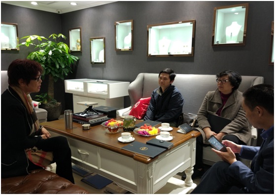 11月9日下午,黄浦区工商联副主席施耘、高玮等一行到淮海街道商会会员企业上海奢尚珠宝有限公司调研,淮海街道商会秘书长王金参加调研。