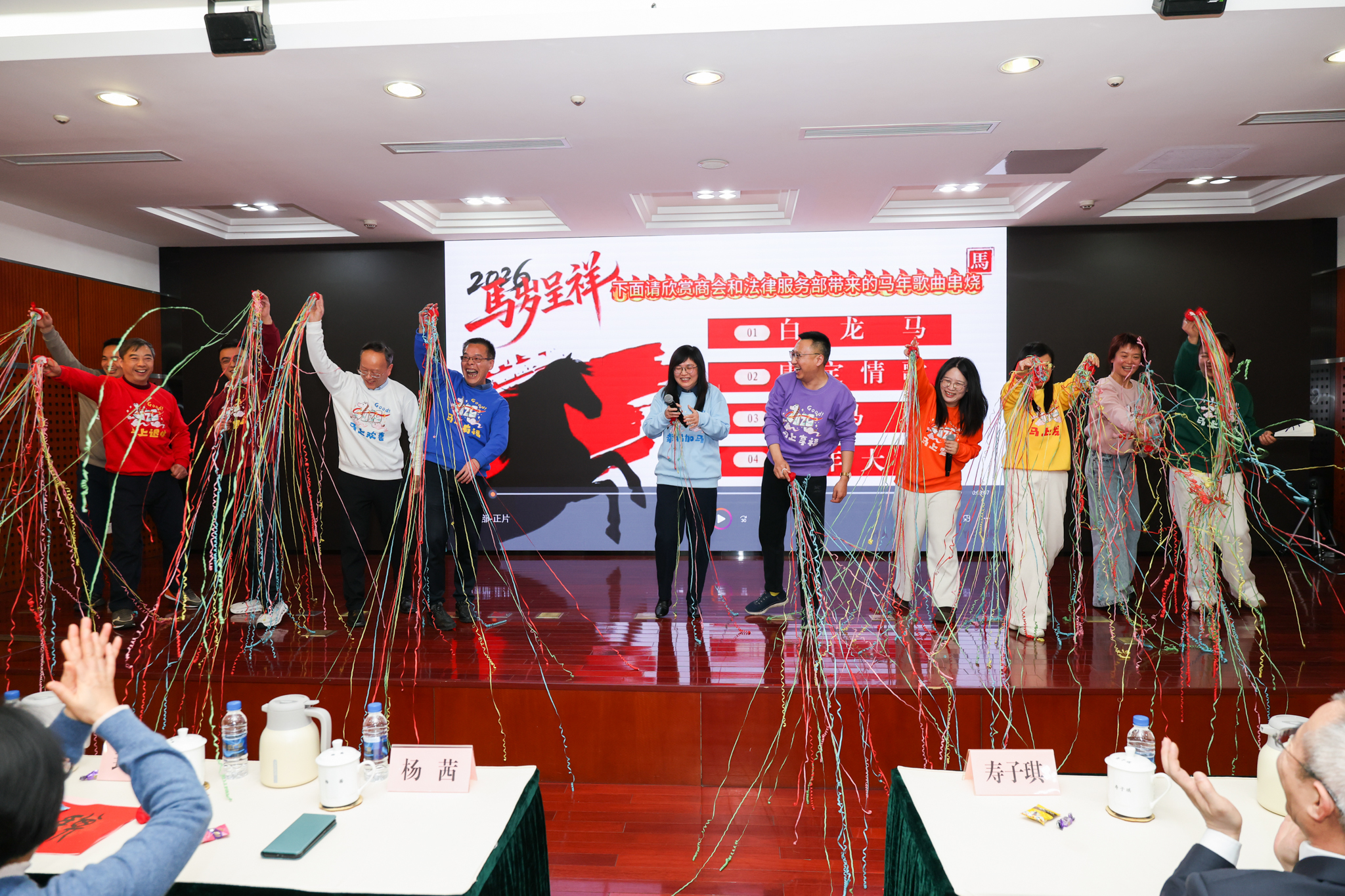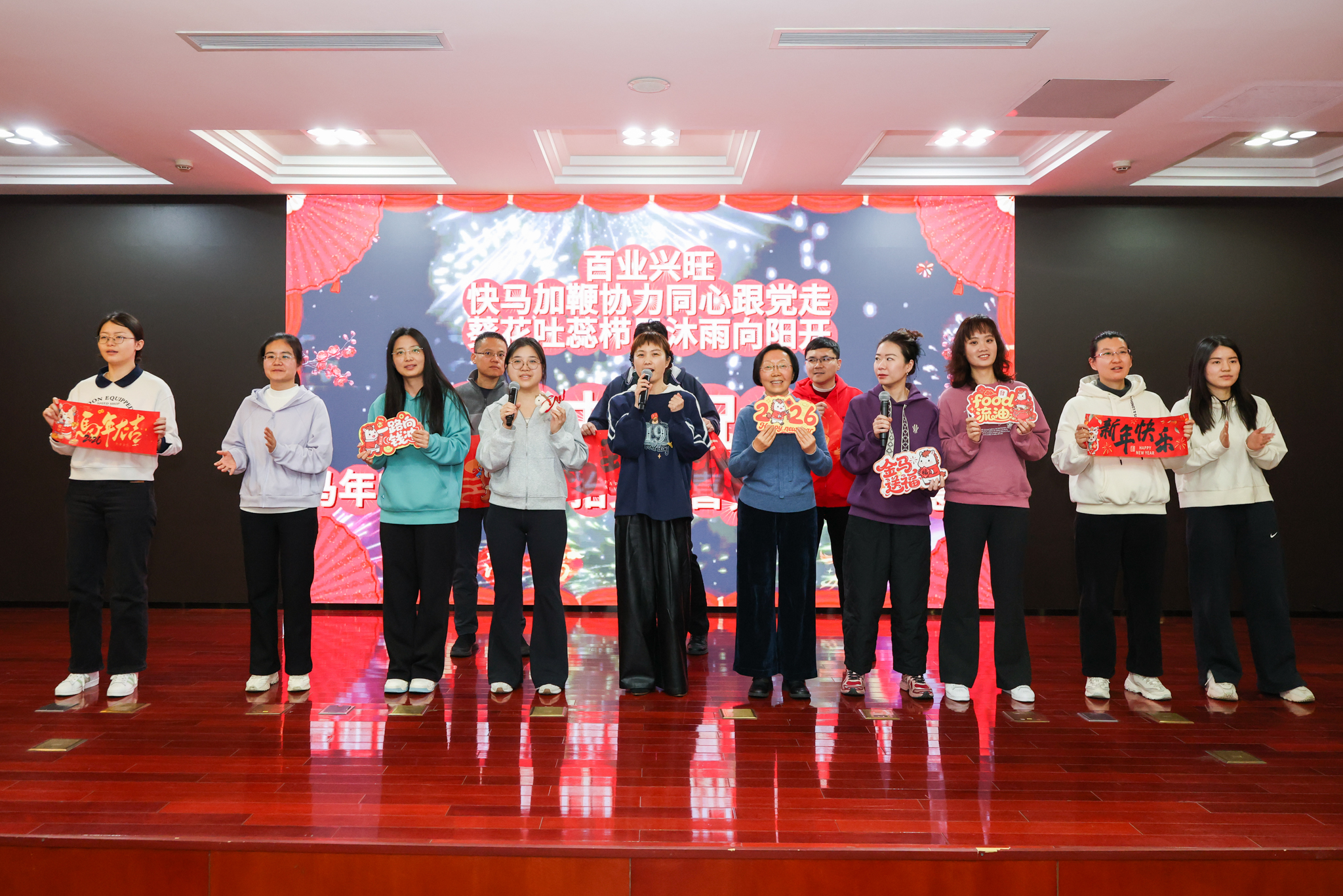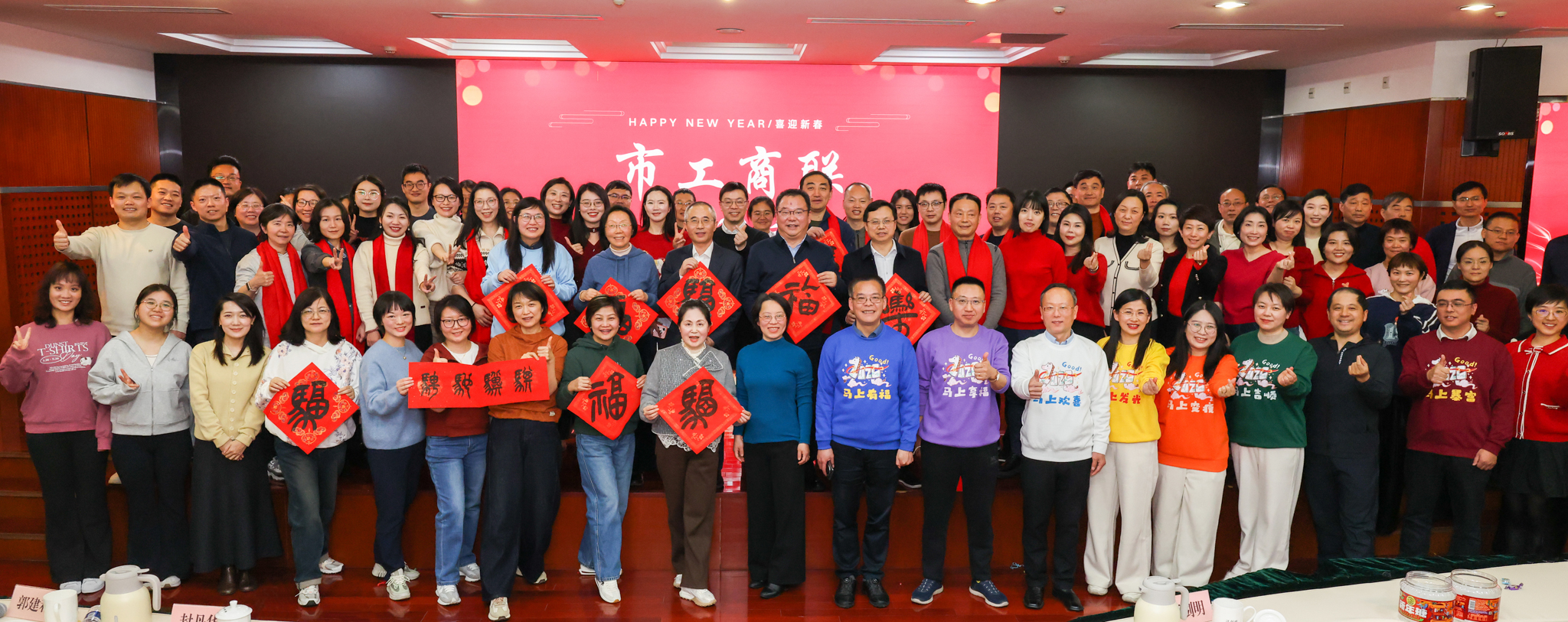 会领导与全体干部齐聚一堂,用歌舞、短剧等形式展现市工商联干部职工骐骥踏新春、驰骋跃高峰的精神面貌。