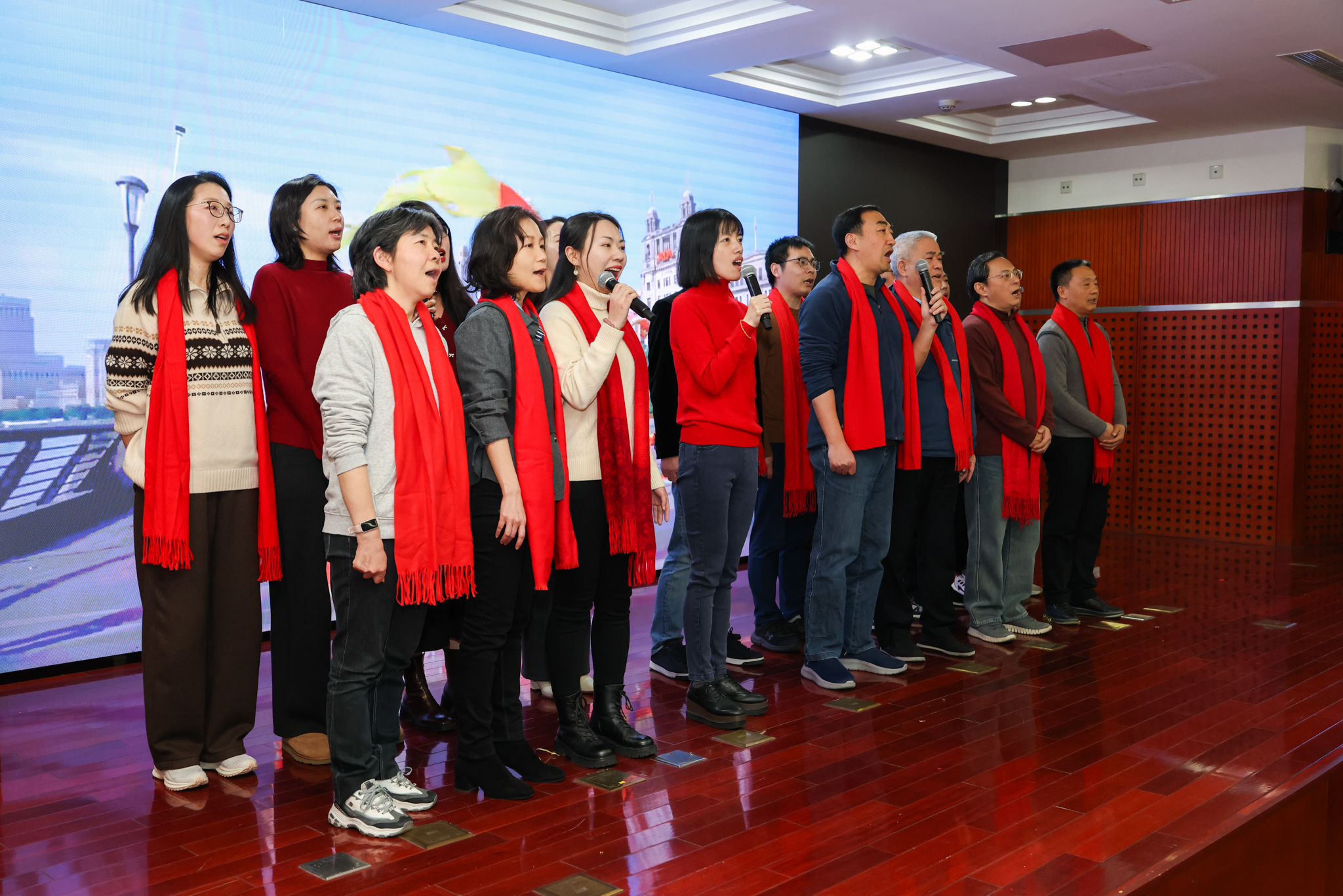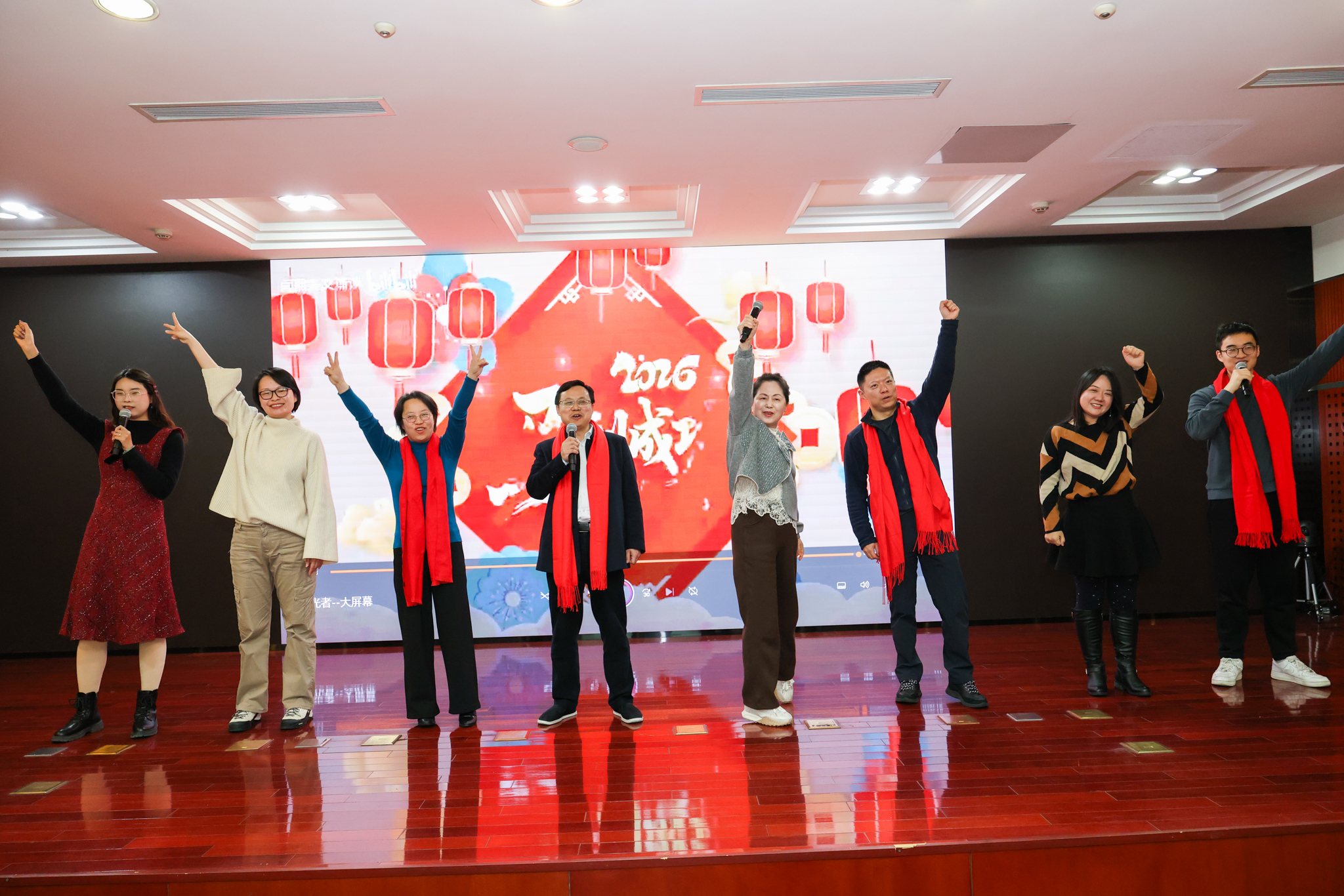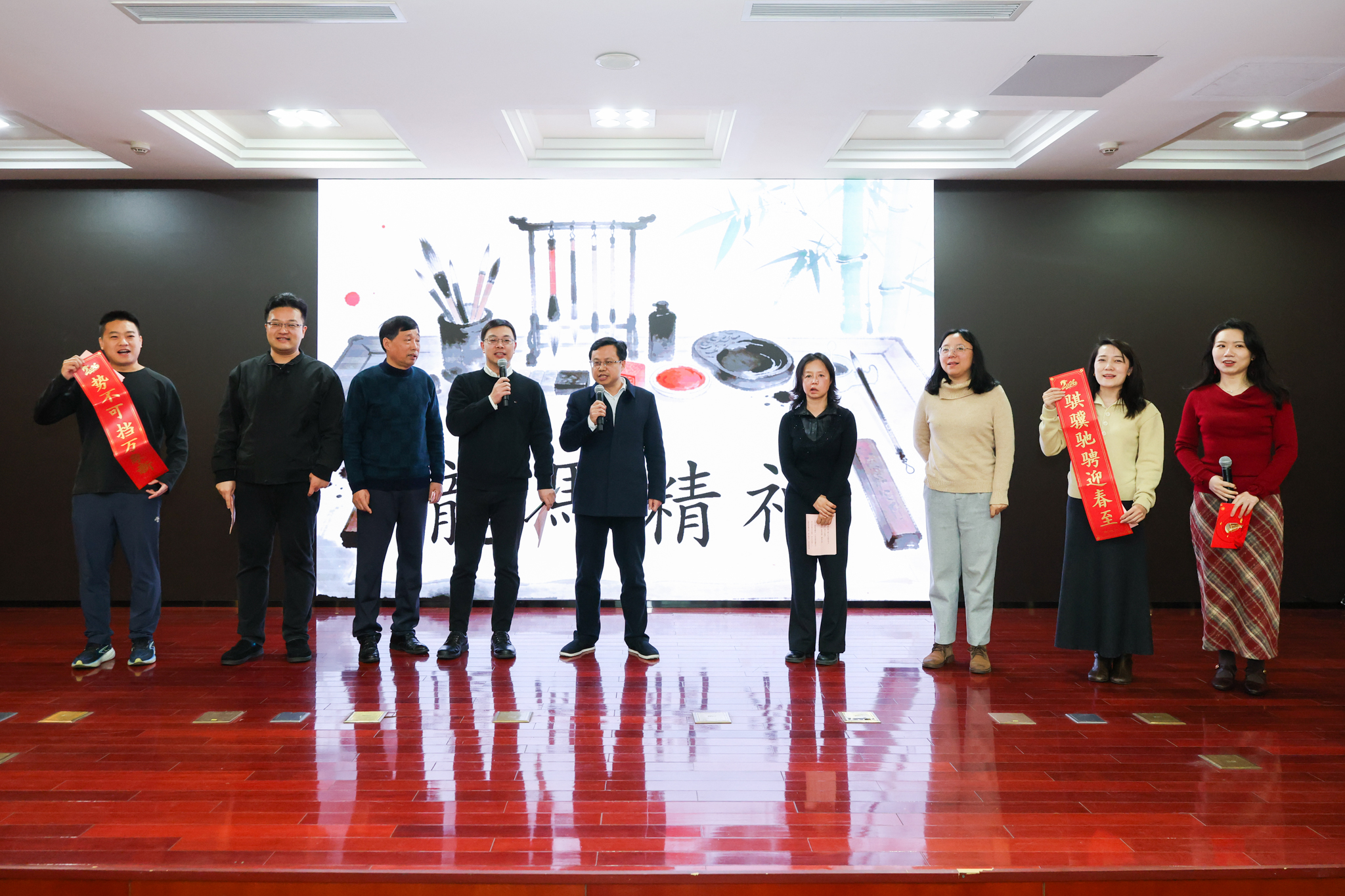 会领导与全体干部齐聚一堂,用歌舞、短剧等形式展现市工商联干部职工骐骥踏新春、驰骋跃高峰的精神面貌。